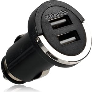 Wicked Chili KFZ DUAL USB-Adapter für Samsung Smartphones zB: Galaxy S3 / S 3 / SIII / i9300 / S2 / Gio / Y Duos etc (2 x USB Buchse / max 2.100mAh, 12V / 24V, schwarz / chrom)